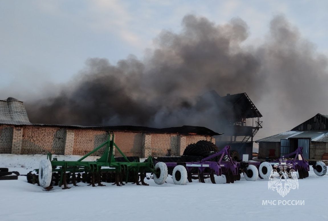 Утром 27 января в Самарской области произошел крупный пожар в сельской местности. В Большечерниговском районе загорелся ангар, в котором была сельскохозяйственная техника.