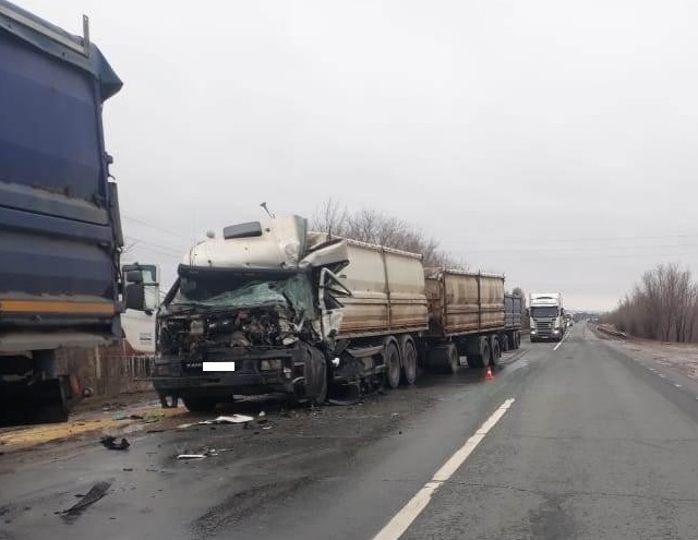 Авария произошло в 8:45 в районе 42 км дороги. В этот момент 38-летний водитель грузовика «Скания» в составе прицепа с грузом ехал со стороны поселка Алексеевка в направлении автодороги «Подъезд к г. Оренбург от автодороги Урал». По предварительным данным, он неверно выбрал дистанцию и столкнулся в другой грузовик «Скания» в составе с прицепом. За рулем того был 34-летний мужчины, двигаясь в попутном направлении, он осуществлял маневр «поворот налево», сообщает облГлавк.
