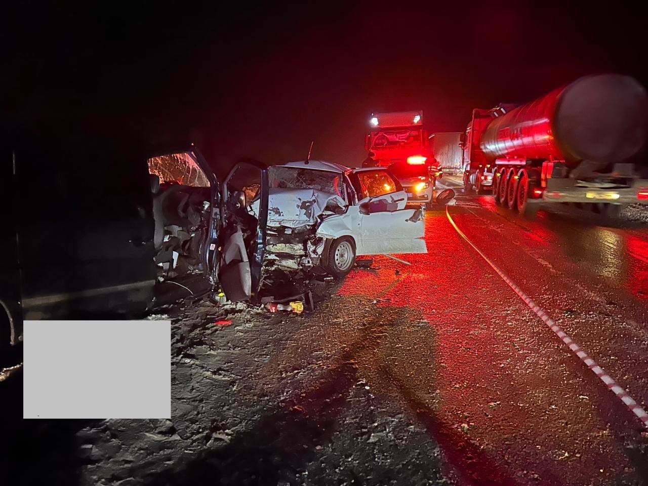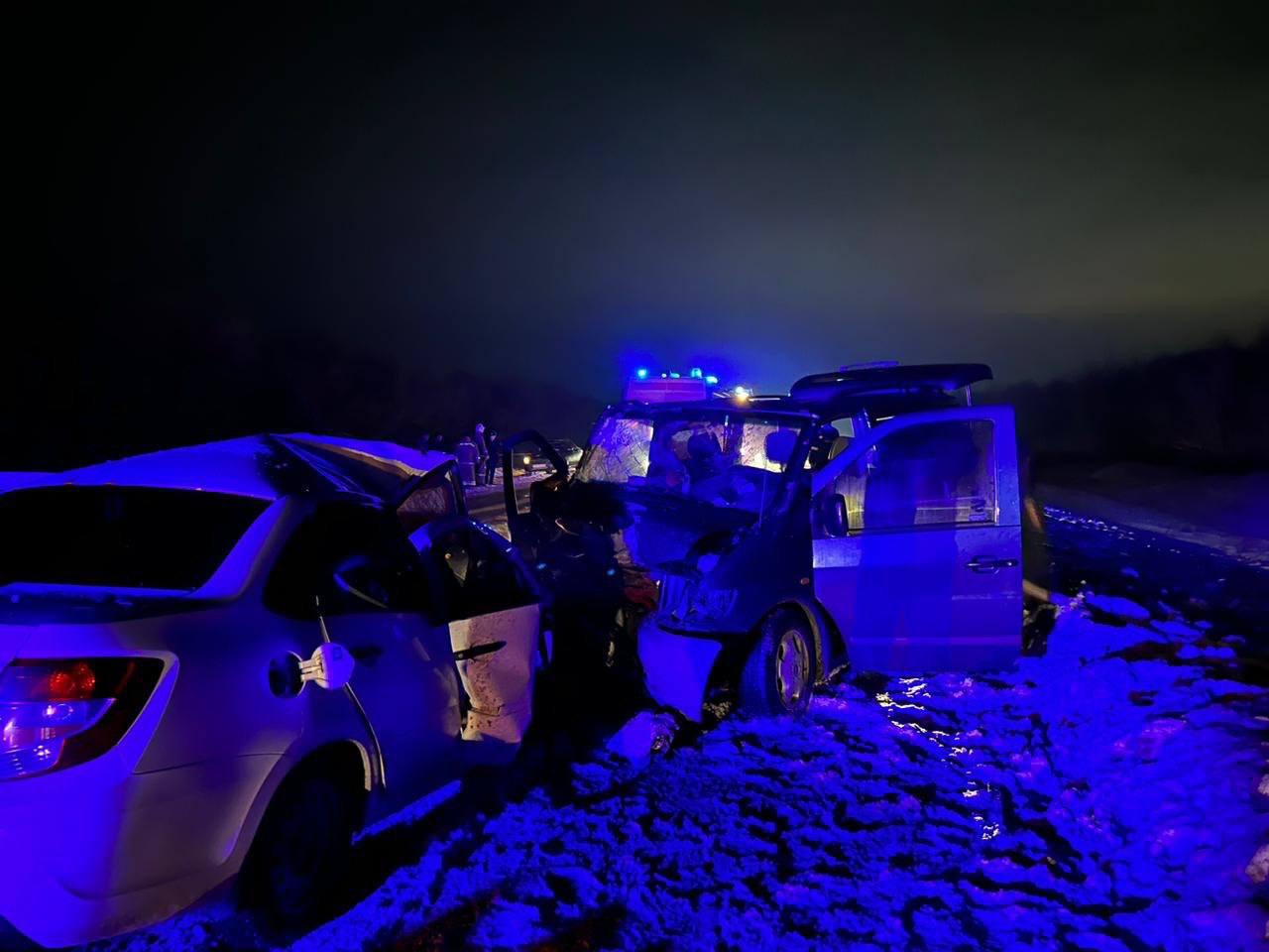 Вечером 30 января в Самарской области произошла крупная авария на трассе А-300. Столкнулись минивен и легковушка.