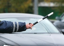 Сотрудник ГИБДДостанавливает машину с затонированными окнами на посту ДПС. Пересечение волгоградского шоссе и МКАД.Фото Григорий Собченко 04.10.2012