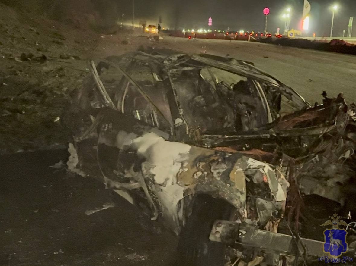 В 2:35 его 23-летний водитель, следуя по шоссе, допустил наезд на бетонные блоки дорожного ограждения, сообщает региональном МВД. После столкновения автомобиль загорелся.