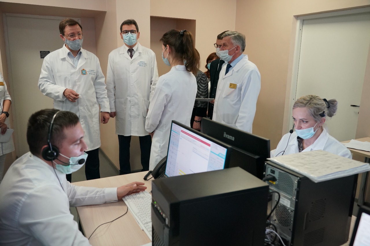 После совещания глава региона проинспектировал работу координационного центра амбулаторной помощи больным пневмонией, ОРВИ и новой коронавирусной инфекцией COVID-19 в поликлинике №15. Он был открыт 14 октября 2020 года. По информации заместителя главного врача по качеству оказания медицинской помощи Елены Макаровой, в центре работают 40 сотрудников, по 20 человек в смену. Они отвечают на звонки жителей с 8:00 до 20:00, включая праздники и выходные. Большую помощь центру оказывают волонтеры из Самарского медицинского колледжа имени Н. Ляпиной.