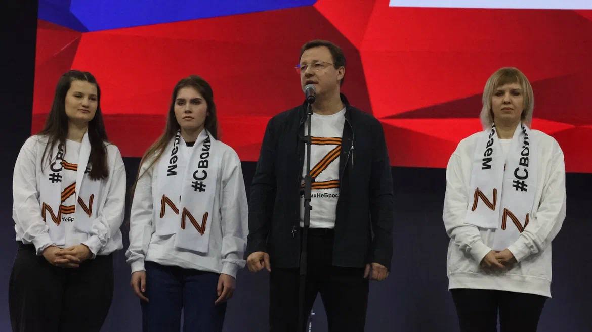 Кульминацией всех мероприятий 18 марта стал митинг-концерт «Русская весна», который прошел в столице региона во Дворце спорта. Предшествовал ему масштабный флешмоб #СвоихНеБросаем, который развернулся на площади возле Дворца спорта. Более 200 представителей общественных организаций Самарской области – Самарское региональное отделение Российских Студенческих Отрядов, Региональный штаб «МГЕР», молодежное сообщество «ЗаВолгу», молодежное правительство Самарской области, Самарский Союз Молодежи, Самарское региональное отделение «Поисковое движение России», АНО «Самарский центр развития добровольчества», а также студенческая молодежь – выстроились в Z-символ, держа над головой таблички цвета георгиевской ленточки. В ключевых точках буквы в руках участников флешмоба развевались флаги Самарской области, ДНР, ЛНР, Крыма и Севастополя.