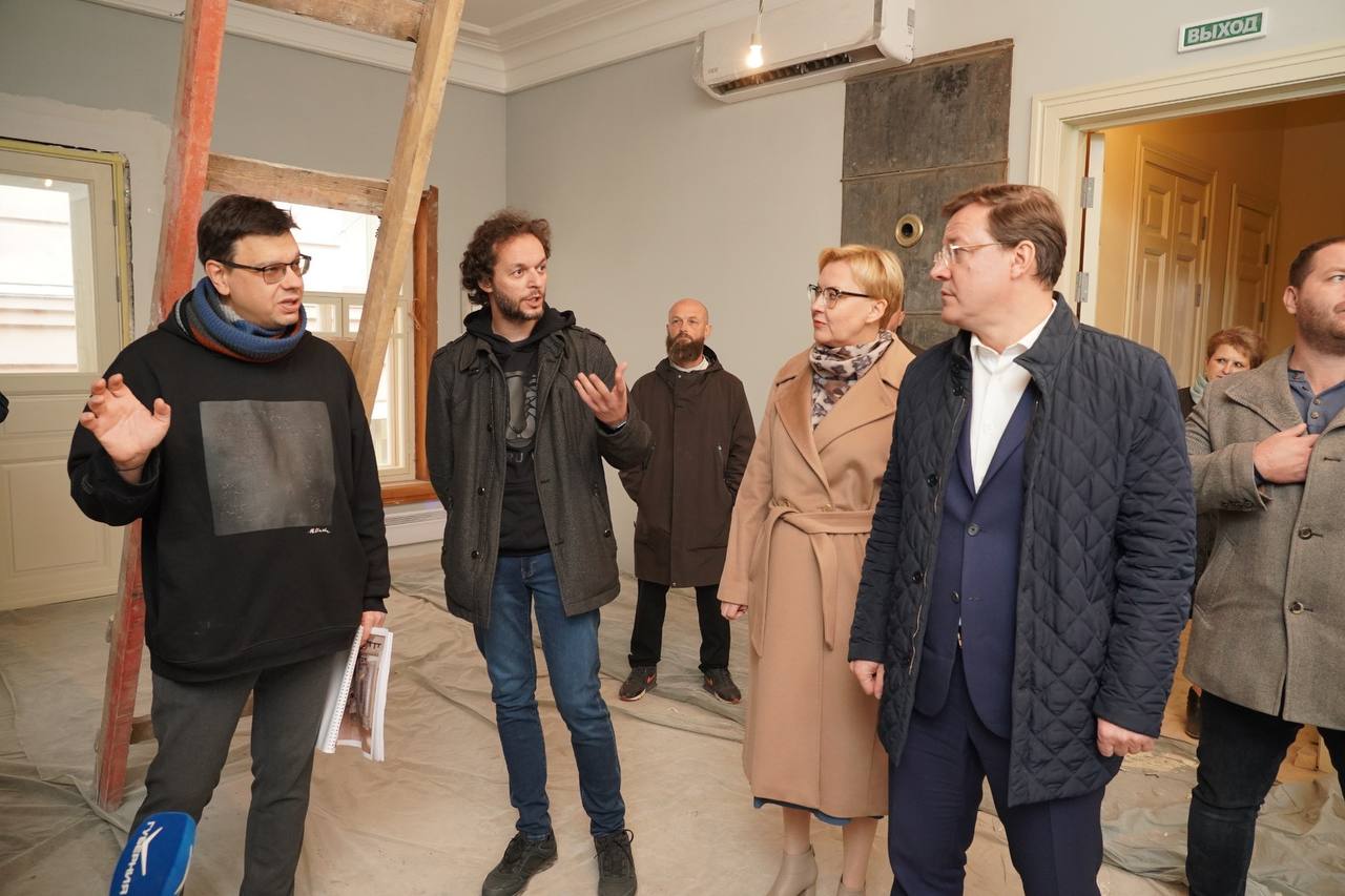 Руководитель дизайнерской группы проекта, архитектор Дмитрий Храмов рассказал руководителю области о том, что аутентичность этого исторического здания полностью будет сохранена.