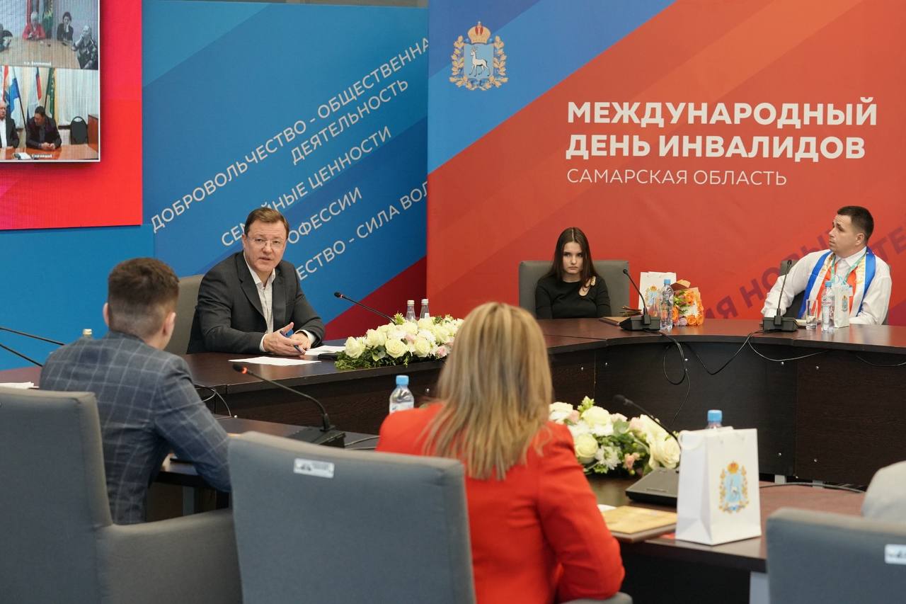 В воскресенье, 3 декабря, губернатор Самарской области Дмитрий Азаров в международный День инвалида встретился с представителями общественных и молодежных объединений губернии, куда входят люди с ограничениями по здоровью. Глава региона обсудил вопросы доступной среды для инвалидов, возможности для занятий спортом, дополнительные меры социальной поддержки и трудоустройства. Кроме того, Дмитрий Азаров вручил именные премии людям с ограничениями по здоровью и родителям, воспитывающим двух и более детей-инвалидов, а также награды победителям и призерам национального чемпионата по профмастерству «Абилимпикс».