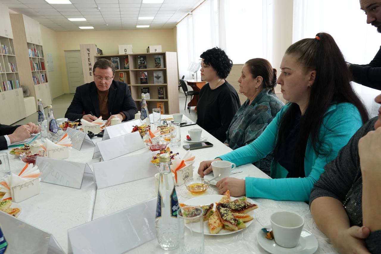 Во вторник, 14 февраля, Губернатор Самарской области Дмитрий Азаров во время рабочей поездки в Ставропольский район встретился с женами и матерями военнослужащих, чтобы обсудить вопросы дополнительной помощи и поддержки защитников Отечества, их родных и близких.