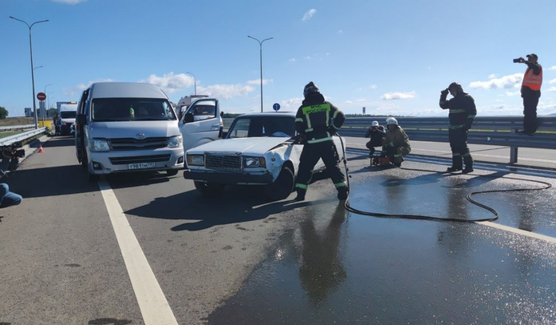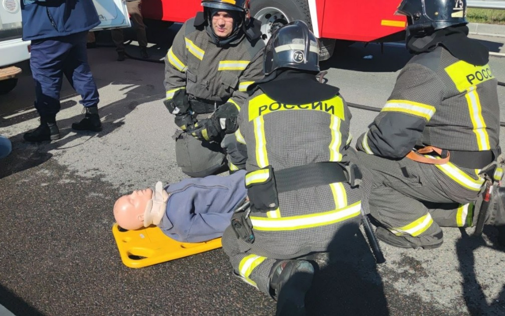 Участники мероприятия организовали аварийно-спасательные работы и провели эвакуацию пострадавших, обеспечили организацию дорожного движения и охрану общественного порядка, выявили причины ДТП и ликвидировали последствия чрезвычайного происшествия, в том числе розлив ГСМ и его возгорание на проезжей части.