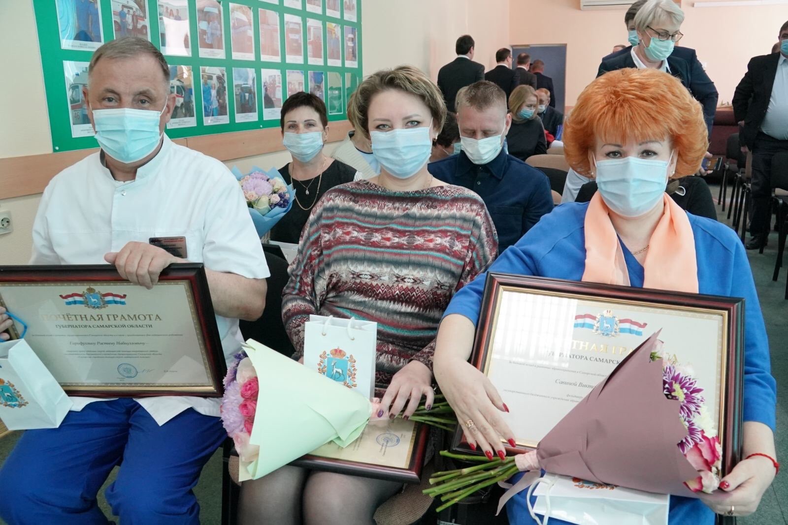 Поздравляя медиков с профессиональным праздником, Дмитрий Азаров поблагодарил бригады «скорой» за благородный труд и вручил им Благодарности и Почетные грамоты Губернатора Самарской области
