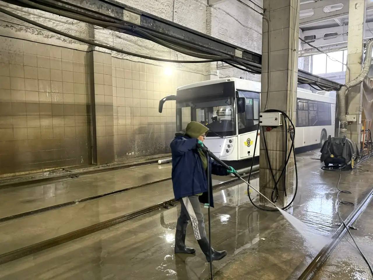 Отдельное внимание в ходе визита уделили поддержанию чистоты в салонах. На предприятии действует регламент ежедневной уборки автобусов перед выходом на линию, а также более глубокая обработка салонов в ночное время.