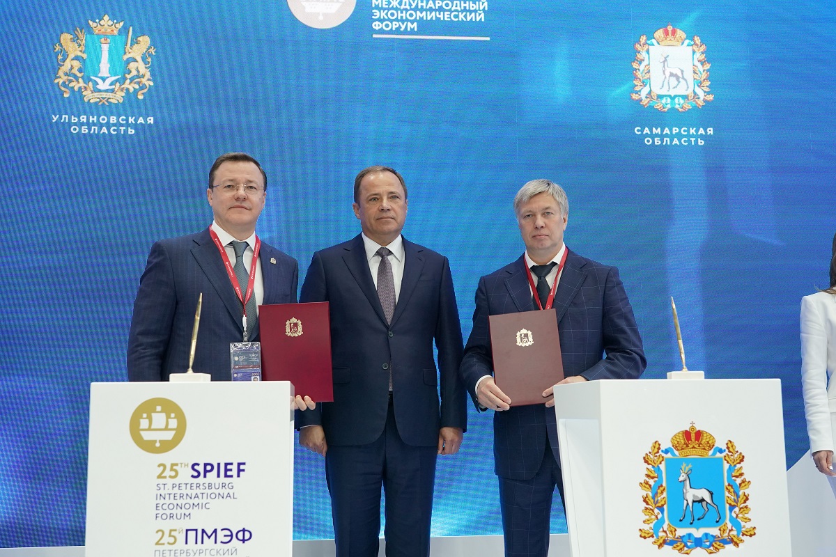 В пятницу, 17 июня, на Международном экономическом форуме в Санкт-Петербурге был подписан ряд соглашений между субъектами Приволжского Федерального Округа, утверждающий план мероприятий на ближайшие 2 года. Самарская область зафиксировала взаимодействие в торгово-экономической, научно-технической и культурной сферах с Ульяновской, Саратовской областями и Республикой Марий Эл. Подписи под документами поставили Губернатор Самарской области Дмитрий Азаров, Губернатор Ульяновской области Алексей Русских, врио Губернатора Саратовской области Роман Бусаргин, врио Главы Республики Марий Эл Юрий Зайцев. Церемония подписания состоялась в присутствии Полномочного представителя Президента Российской Федерации в Приволжском Федеральном Округе Игоря Комарова на стенде Самарской области.