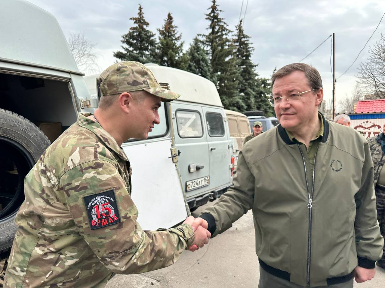Губернатор Самарской области Дмитрий Азаров в ходе рабочей командировки в новые регионы встретился с защитниками Отечества и в очередной раз передал воинским подразделениям, где служат земляки, дополнительную технику, транспорт, спецсредства, снаряжение, гуманитарную помощь. Также глава региона обсудили с командирами воинских подразделений вопросы оказания поддержки Армии и бойцов.