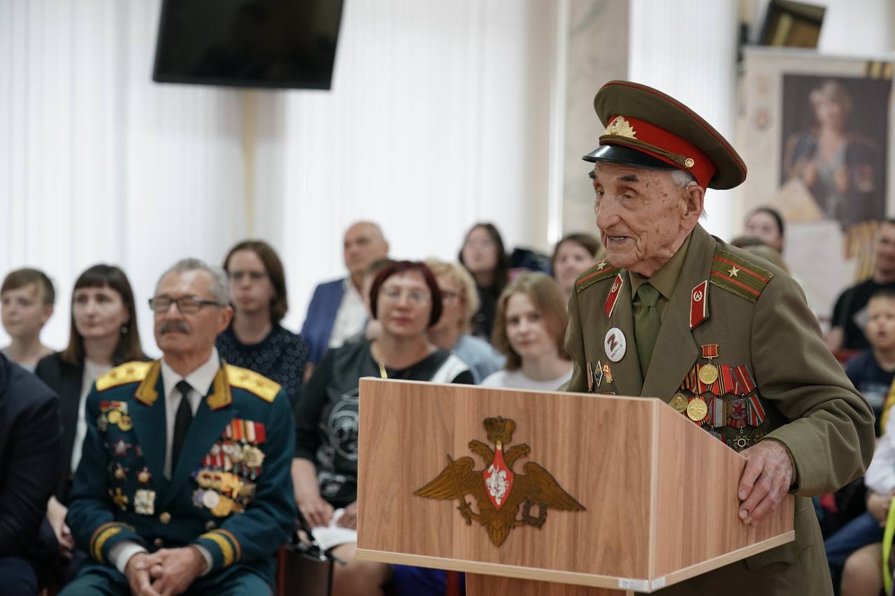 «Дорогие, родные наши ребята. Я ветеран Великой Отечественной войны, мне 96 лет. Будь я помоложе, был бы с вами тоже. Вы выполняете очень ответственную священную задачу — защищаете нашу Родину, матушку Россию, и наш миролюбивый народ. Я очень рад с вами встретиться. Мы гордимся вами, тем, что вы достойно продолжаете славные боевые традиции нашего военного поколения. Мы вас поддерживаем, мы вам верим и надеемся, что вы одержите победу, ведь наше дело правое. Всем солдатам и командирам — ежедневно днем и ночью вести боевые действия без потерь, а потом вернуться домой», — пожелал он военнослужащим.