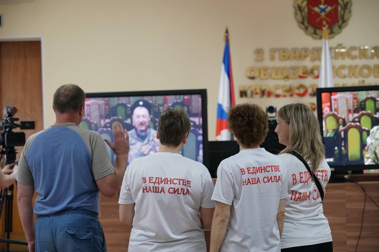 «Дорогие земляки, в зоне СВО, где доблестно сражаются наши братья — настоящие казаки, конечно же, приятно услышать от командования самые высокие оценки их вклада в защиту нашей Родины. Вам точно есть кем гордиться, ваши родные служат достойно», — обратился он к собравшимся. Дмитрий Азаров поблагодарил за возможность проведения телемоста вторую гвардейскую армию и Министерство обороны РФ.