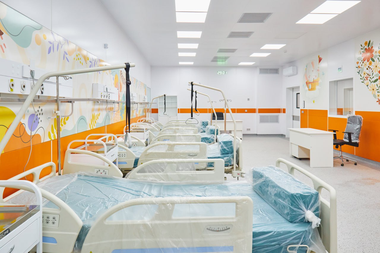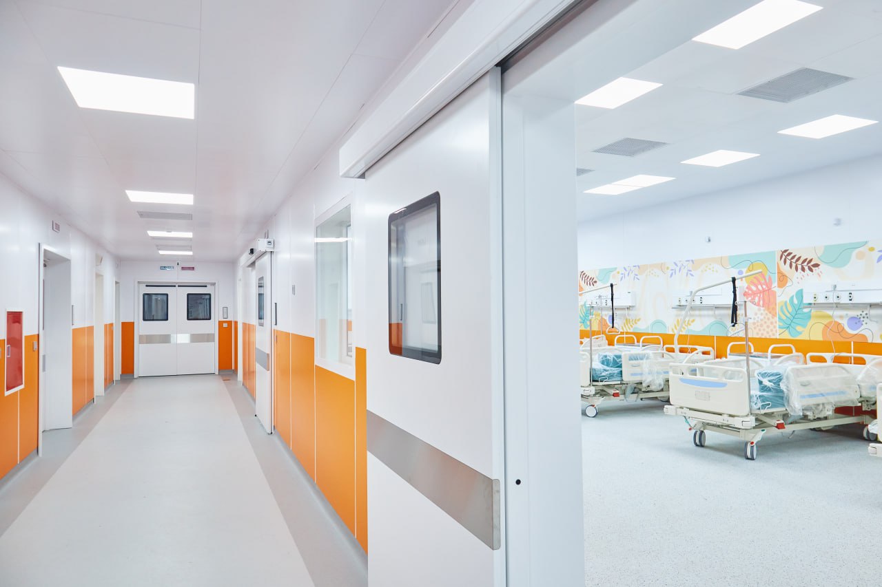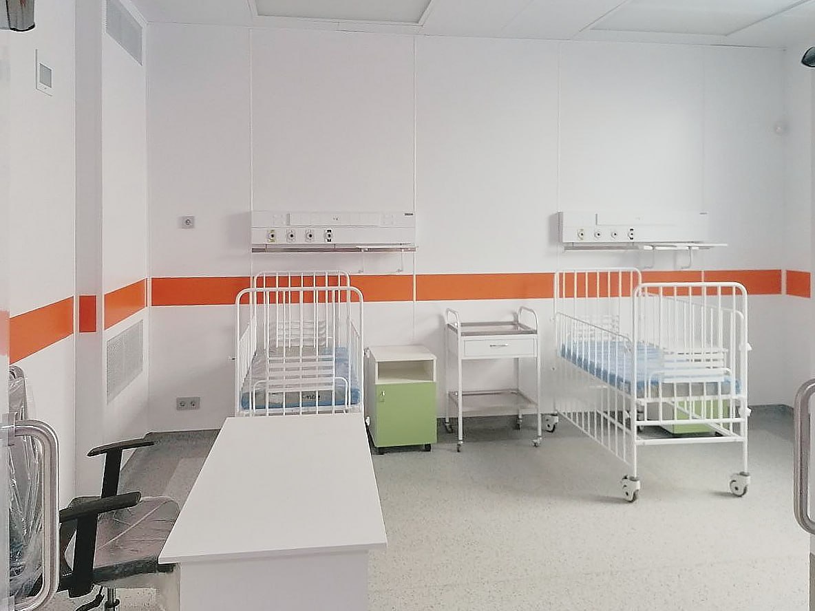 В новом корпусе размещено отделение реанимации, рассчитанное на 8 коек, включая 2 специализированные палаты — ламинарная для онкогематологических больных и 1 – для инфекционных, а также три просторные операционные и противошоковая палата для оказания экстренной помощи.