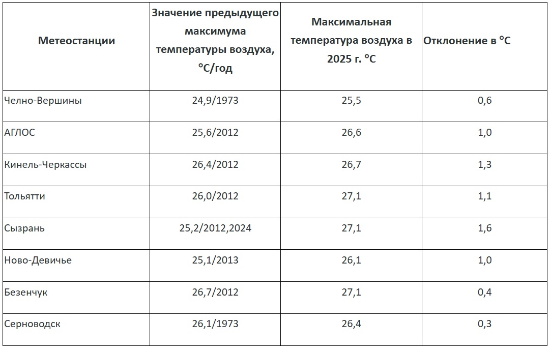 В воскресенье, 20 апреля, были обновлены показатели на 8 метеостанциях региона. В Серноводске (+26,4 градуса) и Челно-Вершинах (+25,5) были превышены значения максимальной температуры, установленные в 1973 году.