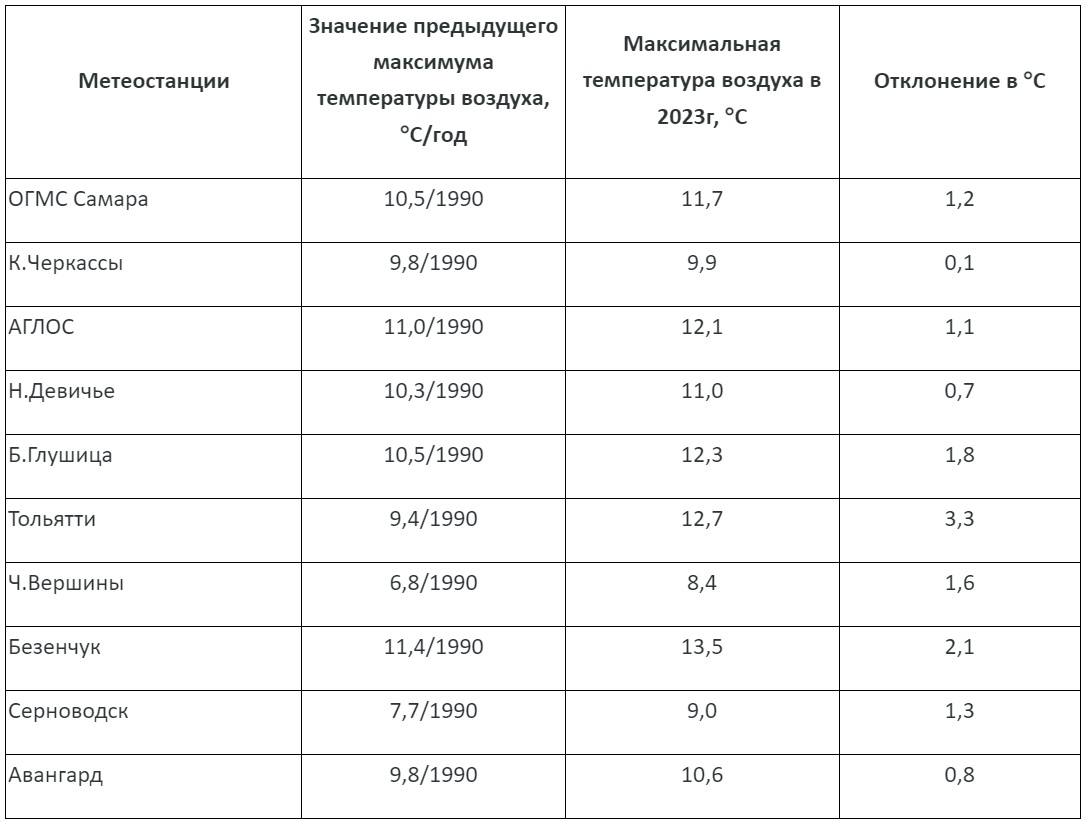 Самая высокая температура воздуха в этот день фиксировалась в Безенчуке – 13,5 градусов (показатель 1990 года – 11,4).