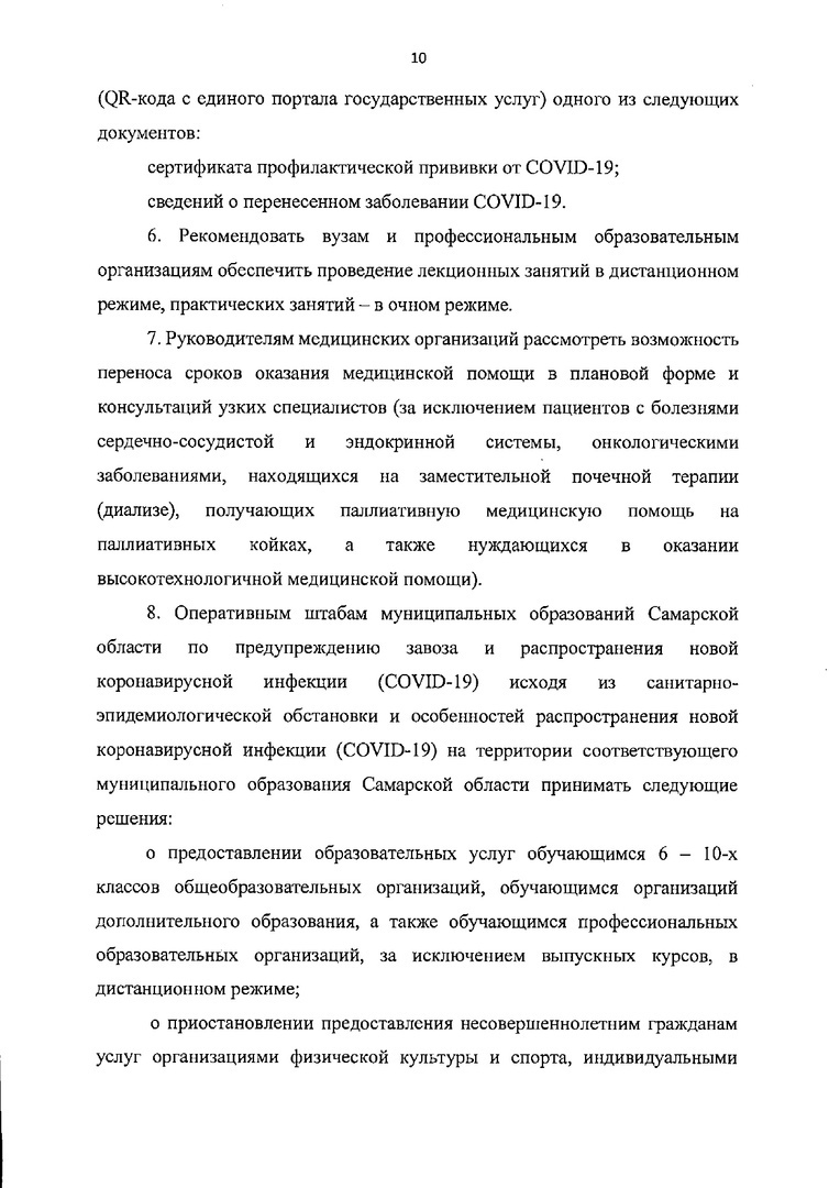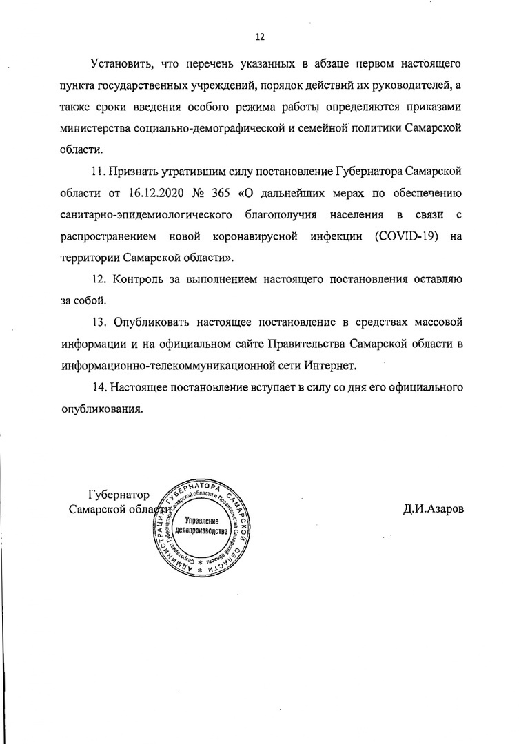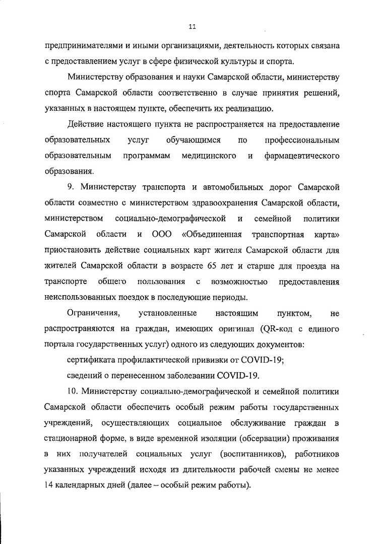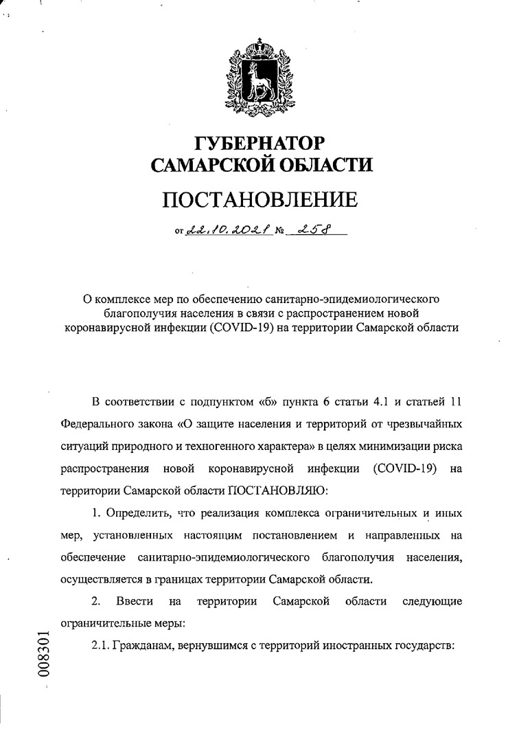 Напомним, эти особенности и ограничения работы для ряда предприятий и организаций были указаны в постановлении №256. Пункт 10 данного документа гласит, что в период с 25 октября по 7 ноября 2021 года иные постановления губернатора Самарской области, устанавливающие комплекс ограничительных мер, применяются в части не противоречащей настоящему постановлению.