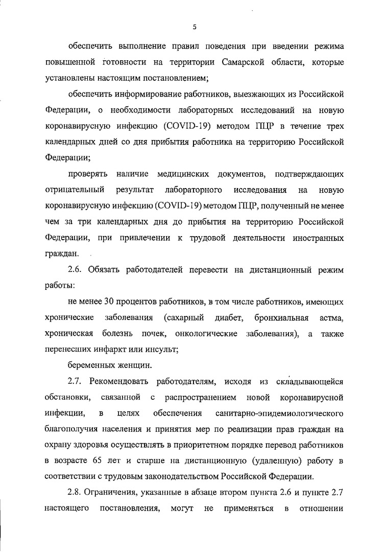 В Самарской области опубликовано новое постановление с ограничениями