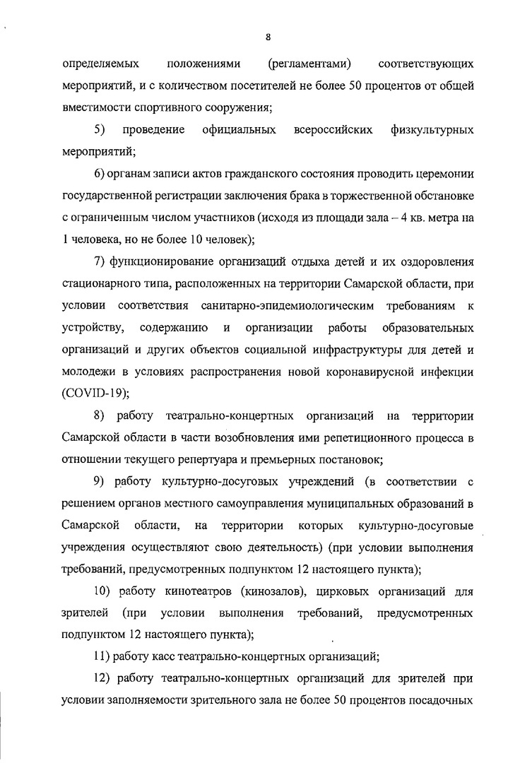 Культурно-досуговые учреждения, концертные залы и кинотеатры откроются при условии заполняемости не более 50 процентов, с рассадкой через одно свободное место или с соблюдением социальной дистанции не менее 1,5 метра.