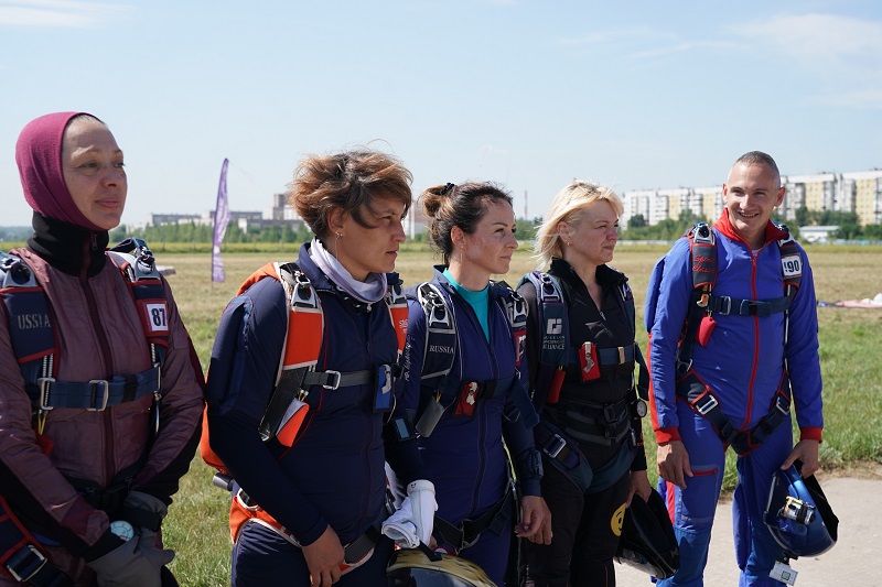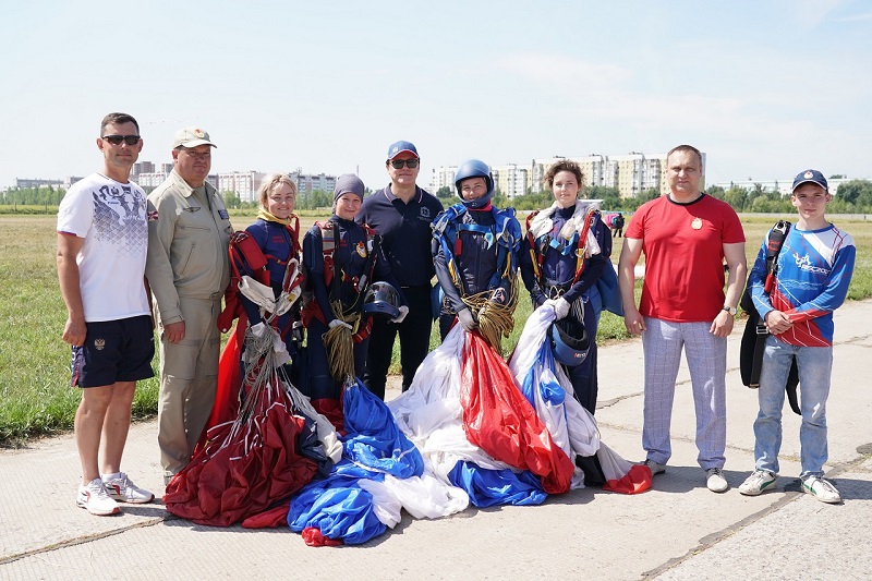 Также спортсмены продемонстрировали мастерство в групповой акробатике, выполняя разные по сложности комплексы фигур и перестроения. Прыжок выполнялся с высоты 2 200 метров.