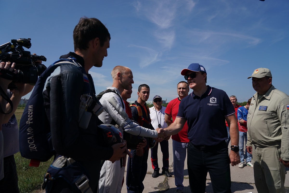 Дмитрий Азаров пообщался со спортсменами команды по парашютному спорту самарского филиала ЦСКА, поинтересовался у них как проходила подготовка к соревнованиям, в каких условиях тренируются.