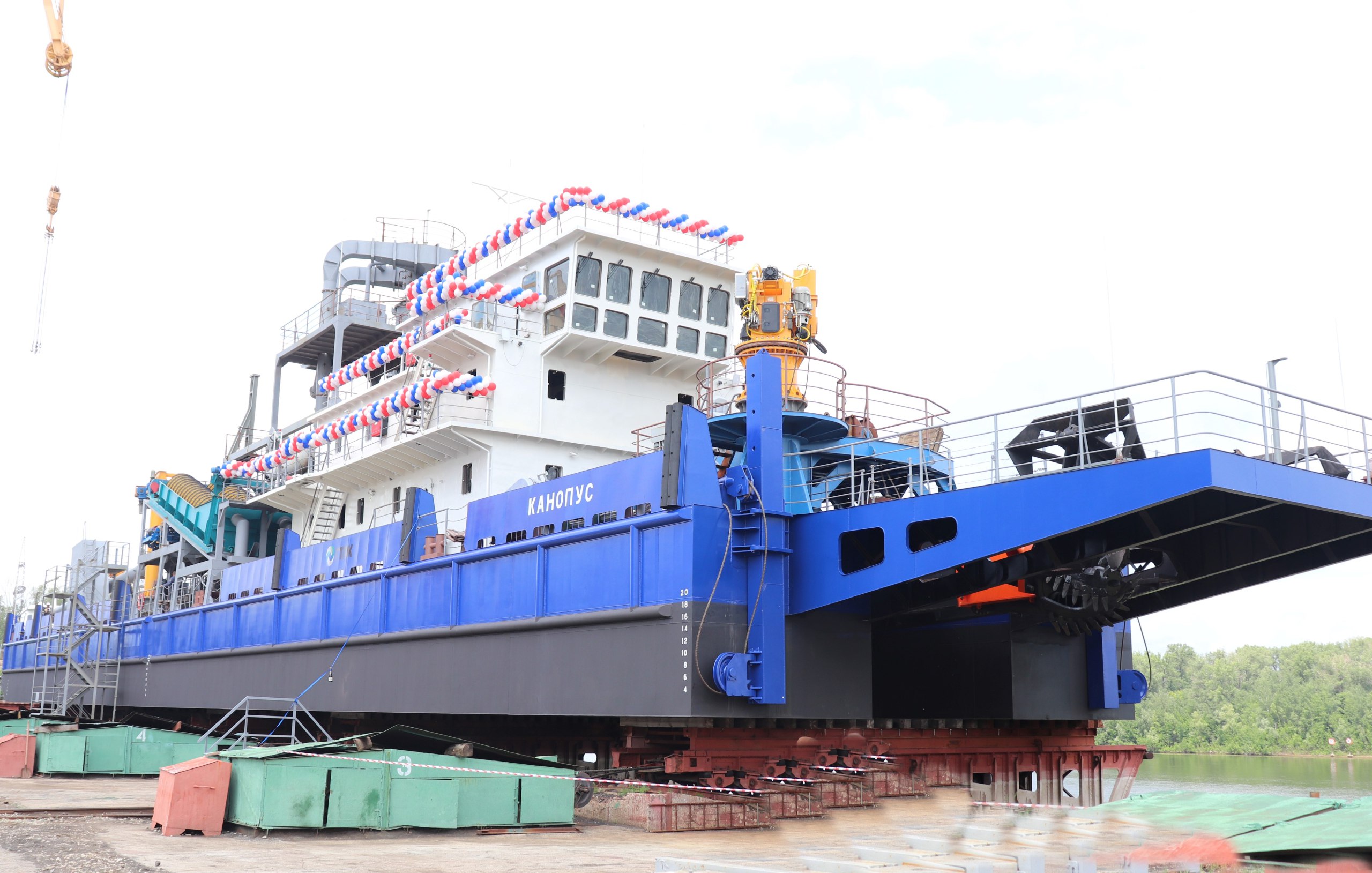 На судостроительной верфи ЗАО «Нефтефлот» состоялся торжественный спуск судна технического флота. Несамоходный дизельный земснаряд проекта Ц480М2рД/НФ предназначен для разработки карьеров и добычи речного песка, укладки подводного трубопровода, а также создания гидротехнических сооружений.