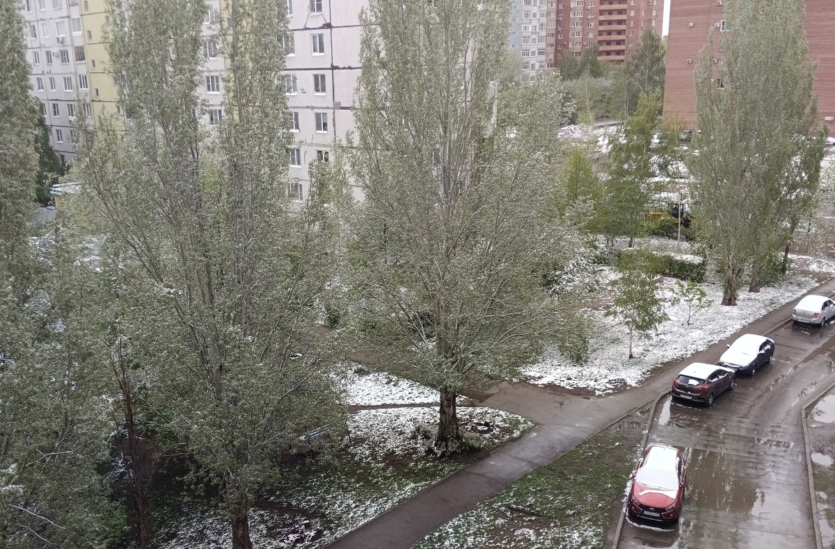 В Самарской области в ночь на 28 апреля выпал снег. К утру образовался снежный покров, при этом осадки продолжались еще несколько часов.