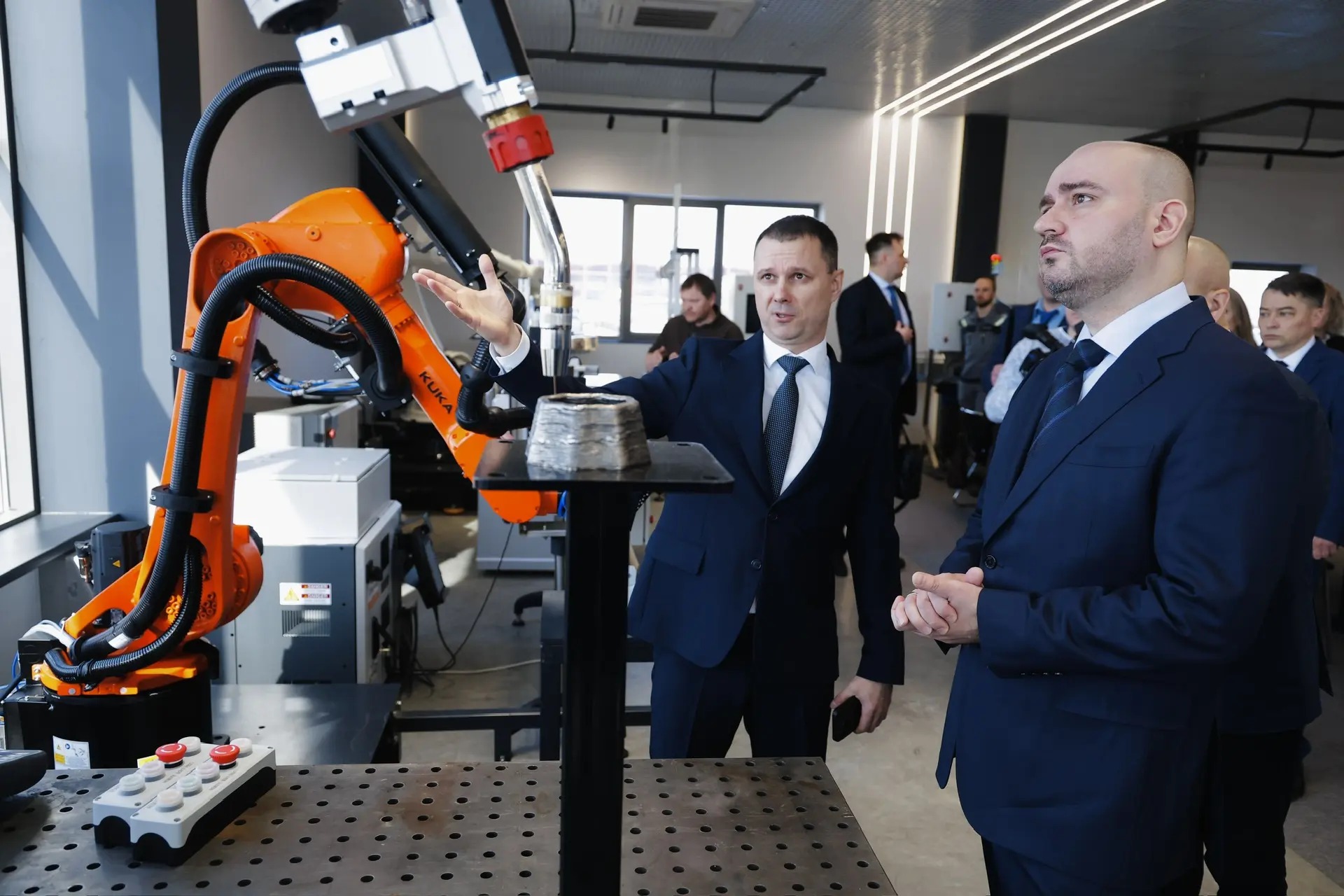 Также Вячеслав Федорищев ознакомился с производственной площадкой компании «Тесвел». На ее базе недавно открылся Центр робототехники. Новое пространство создано для внедрения передовых роботизированных решений и подготовки высококвалифицированных кадров для отечественной промышленности. Проект реализован благодаря грантовой поддержке Минпромторга России в рамках национального проекта «Средства производства и автоматизация» – инициативы, запущенной по поручению Президента России Владимира Путина.
