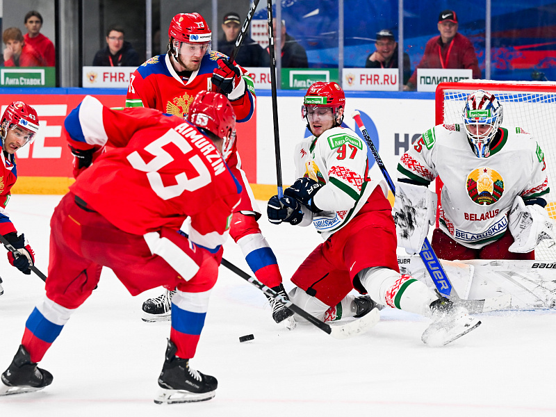 А во втором периоде на льду была только сборная Белоруссии. Четырежды загорался красный свет за воротами россиян. Итог второй двадцатиминутки стал обескураживающим для хозяев – 3:6.