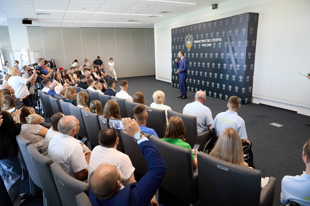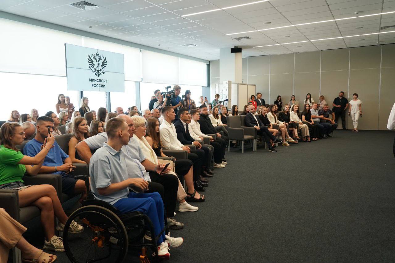 «Мне приятно быть сегодня, в День физкультурника, здесь на Волге — в Самаре. Я вас поздравляю с нашим праздником. В этот день вручим знаки к спортивным званиям, несколько поощрений, ведомственных наград. Это тоже становится доброй традиций в регионах — вас вот так поддержать. И хочу сказать — все это заслужено вами. Вы приложили огромные усилия к тому, чтобы достичь высоких спортивных результатов, прославить Самарскую область, Россию. И я вам желаю в этом дальнейшего успеха», — обратился Михаил Дегтярев к спортсменам и вручил им почетные грамоты и благодарности Министерства спорта РФ. Ряд спортсменов получили звания «заслуженный мастер спорта России», «мастер спорта России международного класса», «мастер спорта России».
